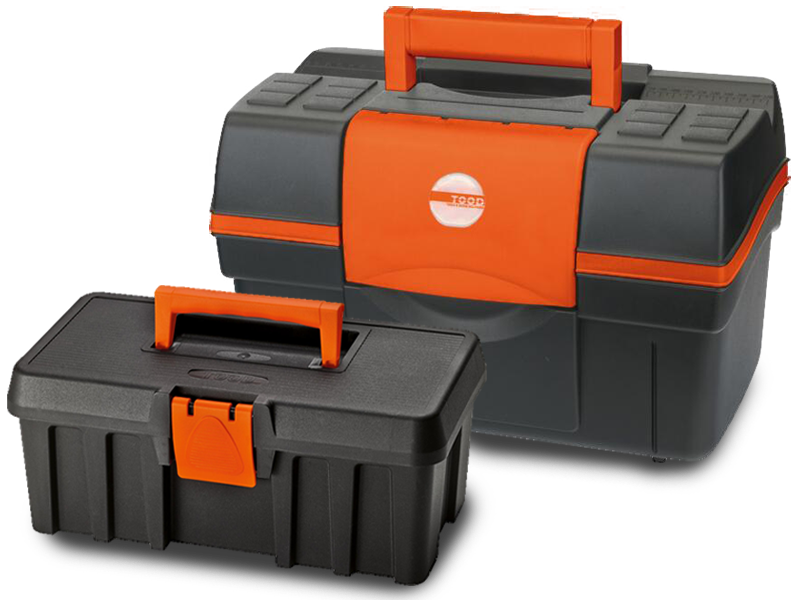 Wir haben für Sie handliche, leichte Werkzeugkoffer mit umklappbarem Griff, zum Transportieren und Verstauen von Werkzeugen und Zubehör.